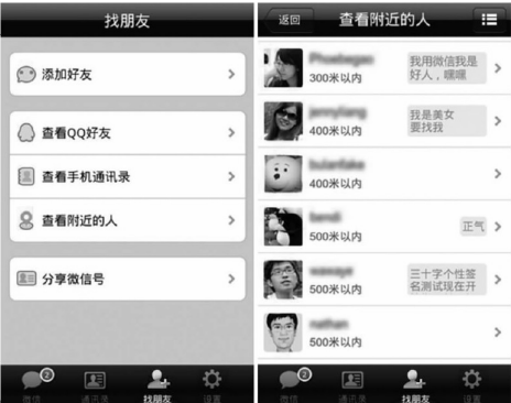 而从6月8日更新的2.1版本至8月3日更新的2.5版本,则在语音聊天工具的定位上,不断深化微信的移动社交功能。2.1版本寻找通讯录中使用微信的好友、2.2版本语音消息的离线化设置和好友推荐功能、2.5版本查找附近的人和语音记事本等功能,都是为这一目的而做出的大胆尝试,使得微信这样一个以熟人交流为主的工具迎合了同陌生人交流通信的需要,微信自此不再是单纯的即时聊天软件(个人IM工具),而开始向社交类应用发展。微信用户不断拓宽自身的社交范围,基于统一的移动化平台,在系统的微信生态圈中,随时随地交友、互动,用户规模也激增至1500万左右。