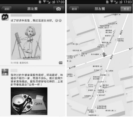 2012年4月19日,微信发布的4.0版本首次引入了“朋友圈”概念。微信用户在朋友圈中可以分享图片、记录心情等,使得其每天的发帖量已经大大超过了微博最鼎盛的时刻,成为我国互联网最常用的社交工具,极大地增强了用户的使用黏性。同时,4.0版本的位置签到功能,能够让微信好友实时了解自身位置动态,为微信的移动定位技术的实现埋下了伏笔。“朋友圈”的巨大成功,使得微信的使用人群爆发式的增长,在2012年的4月达到1亿。