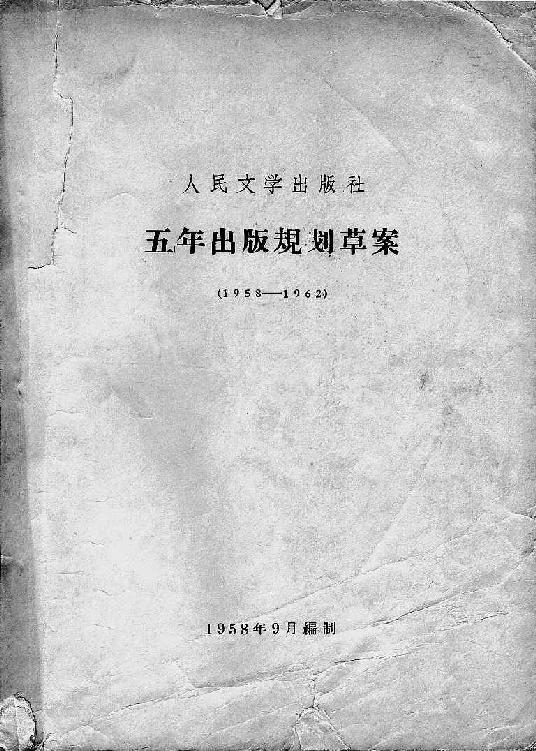 1958年9月,《人民文学出版社五年出版规划草案(1958-1962)》编制完成。这个长达四百七十二页的规划草案,分中国文学、外国文学两个部分,奠定了迄今为止人文社图书出版的基本构架。现在的一些丛书计划、选题思路,仍得益于或延续了这个视野开阔、气魄宏大、结构完整的规划草案。其中有的丛书,如“中国古典文学读本丛书”、“中国古典文学理论批评专著选辑”、“外国古典文学名著丛书”、“外国古典文艺理论丛书”等等,已经成为人文社长销不衰、独家拥有的品牌图书和非常丰厚的版本资源。