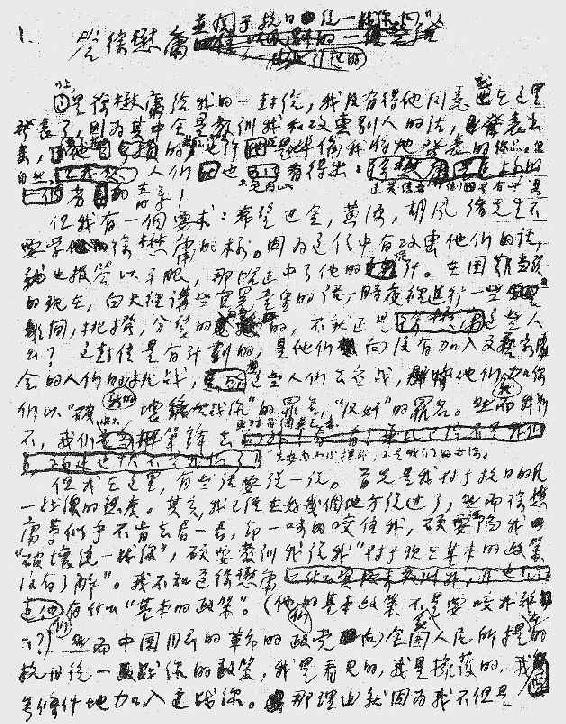 冯雪峰为病中的鲁迅拟稿的《答徐懋庸并关于抗日统一战线问题》手迹