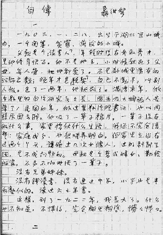 聂绀弩《自传》手稿,年代不详,似写于50年代中期