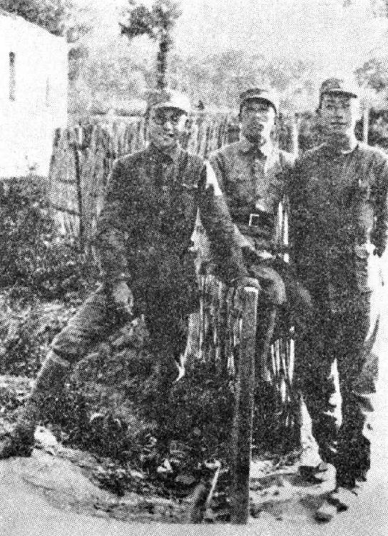 聂绀弩(右)与黄源(左)、彭柏山1939年摄于皖南新四军军部驻地汤村