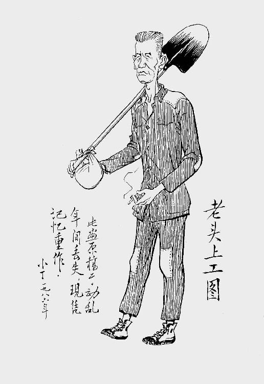 北大荒难友丁聪为聂绀弩绘《老头上工图》