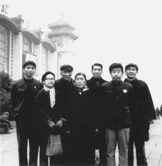 1976年11月2日,聂绀弩(后排左二)出狱回京,与到车站迎接他的周颖(前排中)、骆宾基(前排右一)、戴浩(后排右二)等人合影留念