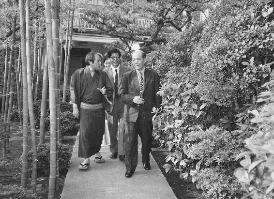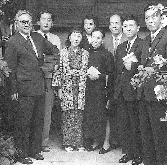 1963年中国作家代表团访问日本,左一巴金,右一马烽,右二许觉民,右三严文井,右四冰心