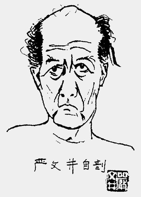 他还画了一幅自画像“严文井自剖”,郑重地钤上了自己的印章,复印了好多张,分赠给同事和朋友。这幅自画像意味深长,嘴和脸都扭曲了,实际上是他内心痛苦的一种抒发,也可以说是他和同时代知识分子的一幅特殊的精神肖像。