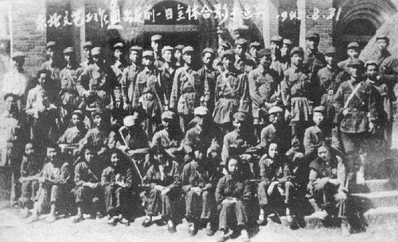1945年8月31日,东北文艺工作团出发前一天合影于延安,二排右三为严文井