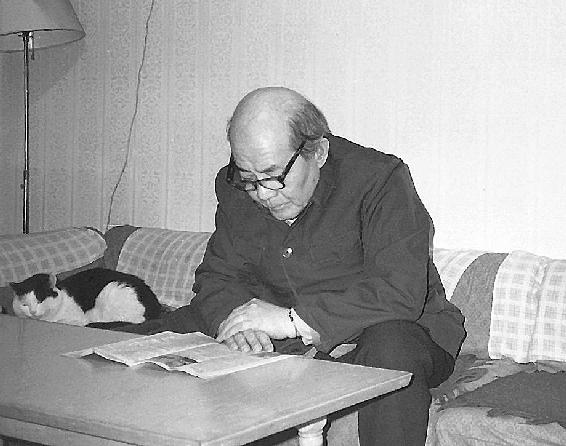 穿着深蓝色中山装的严文井,衣襟上有明显的油渍,肩上散落着头皮屑。一只黑白猫不时地在我们俩周围踱来踱去,在他身上爬上爬下。他任凭这只猫不断地在身上腻,偶尔耐心地和它说两句话,非常亲昵,没有一点厌烦,就像猫是他所溺爱的一个孩子。