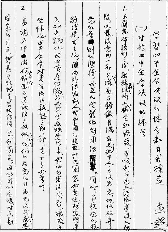 孟超的学习体会和自我检查手稿,写于1954年5月20日