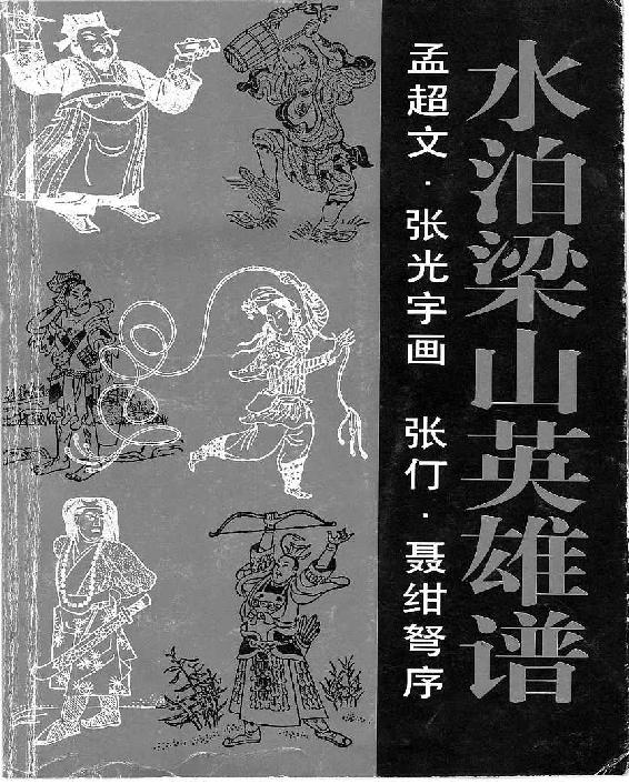 孟超著《水泊梁山英雄谱》,聂绀弩、张仃作序,张光宇插图,封面制稿尹凤阁,设计叶雨,生活•读书•新知三联书店1985年10月出版