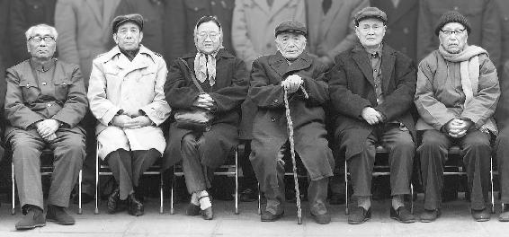 1986年3月17日,楼适夷(右三)与参加冯雪峰学术讨论会的代表合影,左一林辰,左二陈明,左三韦君宜,右一黄源,右二李何林