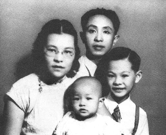 1940年,巴人与妻子王洛华、儿子王克宁、王克平在香港合影