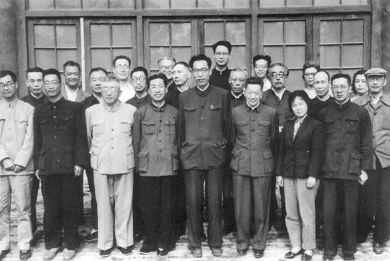 1964年秋,编译所部分同仁摄于中山公园。前排左起:伍孟昌、蒋路、金人、张铁弦、陆风、金满城、黄薇、杨霁云、陈迩冬;后排左起:张友松、萧乾、汝龙、方白、绿原、孙用、顾学颉、牛汉、刘玉铮、高长荣、赵少侯、许磊然、梁均、谢素台。刘辽逸摄,蒋路保存,蒋路夫人凌芝提供。