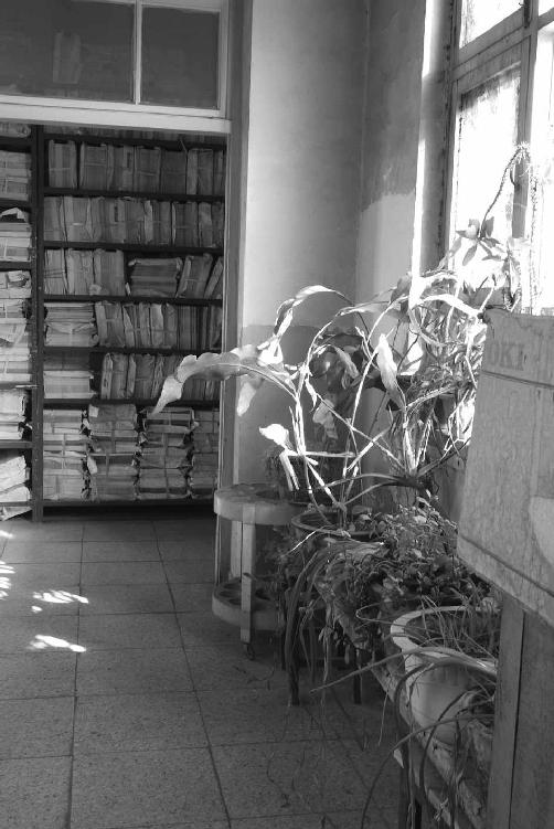 上楼进门,两旁窗前地上,摆着些花花草草,再往里走,左边是几个铁架子,紧挨着一摞一摞都是杂志,有的堆得很高,然后是一溜旧柜子,把一条并不长的楼道挤占得满满的,里边每个房间的门大都是关着的,显得黑黢黢的,没有多少光亮。