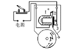 到了19世纪,法拉第总结了电磁感应定律以后,科学家们把电和磁完全联系起来了。电磁铁具有广泛的应用,下面以电铃为例作以分析。上图是一张简单的电铃结构图,主要部件是一个电磁铁,电磁铁上有一块衔铁,它和弹簧片相连接,衔铁的一端有一个小锤,锤和铃盖之间有一个小空隙。按下按钮接通电流,铁芯被磁化,将衔铁向下吸,小锤就会碰击铃盖,发出叮呤的声音。在衔铁被吸向下的同时,接触螺钉与弹簧片断开,电流中断,电磁铁失去磁性,衔铁又被弹回原处,电流再次接通,小锤又敲击一下铃盖。这样,只要按下电钮,清脆的门铃声就会响起来。