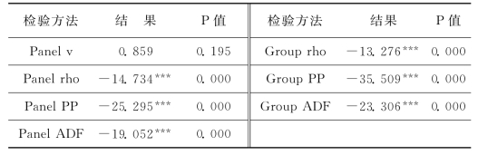 注:(1)表中7个检验的原假设H0为:不存在协整,在零假设下统计量服从渐近正态分布;(2)符号***表示在1%的显著水平下拒绝原假设;(3)检验设定中,认为没有时间趋势,使用SCI标准选择滞后阶数,Newey-west窗宽选择使用的是Bartlett核函数。