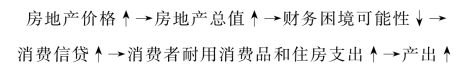 现代居民的消费尤其是对耐用消费品和住房的消费多要借助于信用渠道即银行的消费信贷。如果房地产市场持续繁荣,房地产价格持续上涨,居民的真实资本流动性增强,价值增值,家庭资产负债表更加健康,发生财务危机的可能性降低,居民会倾向于向银行进行借贷,更多地消费耐用品、住房等。反之,如果房地产市场萧条,房地产价格持续走低,居民的真实资本流动性减弱,价值降低,家庭的资产负债表状况就会恶化,发生财务危机的可能性增加,居民将减少耐用消费品、住房等的购买。