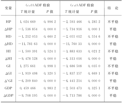 表5.4 HP、HI、HD、GI和GDP单位根检验