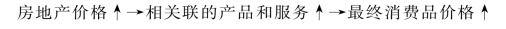 房地产业关联度极大,在一定时期内,能够显示其对宏观经济运行状况的敏感性和超前性,是经济发展状况的指向标,具有先导性(张红,2005)。从房地产的生产、销售、使用到再生产,因为产业链长,建造和使用周期长,需要大量的资金和物资,联系着一大批相关产业,涉及面广,关联效应强,因而它的发展能够促进和带动相关产业的发展。具体而言,房地产涉及的领域非常广泛,它与建筑、建材、冶金、纺织、化工、机械和仪表等50多个物质生产部门紧密相关,它的发展直接影响到自来水供应业、交通运输业、邮电业、煤气供应业、家用电器、家具装饰产品以及旅游、金融和服务业等行业的发展。因此,房地产作为重要的高价值实物资产,其价格变动必将对其相关联的各种生产产品、消费品,甚至相关联的服务业的价格带来一定影响。类似于上游工业品价格对下游消费品价格的传导过程,房地产价格的上涨,也必然导致与之相关的价格变化敏感的产品服务价格上涨,从而有可能导致整个社会的价格总水平上升。除对下游消费品价格的传导外,房地产价格上涨通过产业链的逆向带动效应,逆向带动上游相关产业的投资和产品价格,如钢铁、水泥和电解铝等。这种从产成品向生产资料的需求传递,扩大了对相关基础材料的社会总需求,进而推动其价格上涨。可见,房价上涨,将直接导致与之相关联的产品、服务和行业的价格上涨,作用机制描述如下: