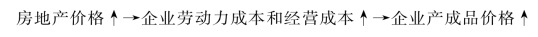 一方面在居民的生活成本中,居住成本的开支无疑占有很高的比例,房价上涨直接推动了居民居住成本的上升;居民直接生活成本上升将导致劳动者有提高工资的迫切愿望,由此可能引发企业(特别是劳动密集型企业)用工成本的上升。另一方面,房价上涨,房地产市场火爆,不仅使土地资源供求关系更加紧张,而且带动了商业用地和工业用地价格的大幅上升,促使企业生产经营的成本上升。可见,房价上涨引发的企业用工成本和经营成本的上升,可能推动产成品价格上涨。
