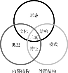 上文对形态、类型、模式和元素的四种说法进行了梳理,我们认为,形态、类型和模式各有相似之处,而元素是构成形态、类型和模式的最基本单位。类型与形态相近的地方主要是它们都具有相对稳定的文化内涵。类型的概念更多是给事物一种思路或者指示,而模式的概念更多是给事物一种样式或操作方式,所以结构是模式当中的主要成分,而这种成分在形态当中也可见。此外,类型主要是一种分类体系,而模式则是一种构架体系。两者都具有相对稳定的限定性特征,才得以作为一种可被参照的体系(图1-2)。