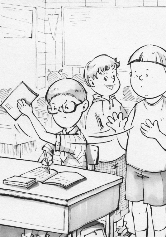 上午第二节课下课后,组长发本子时,一百二跑到李辉那一组,从组长手里拿过李辉的本子,到了李辉跟前说:“李辉,我帮你把本子拿来了……”李辉一把夺过一百二手中的本子。