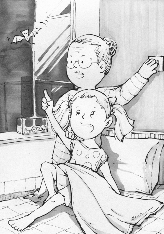奶奶看看郭芳芳,以为她还没有从害怕里走出来,就安慰说:“芳芳,别怕,那是蝙蝠,一定是捉蚊子不小心飞进来了。”