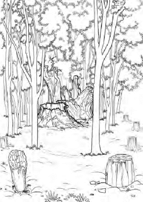 终于,少年特警们发现血迹在一片稀疏的小树林内消失不见了。小树林当中有几棵枯死的大树,只剩下或高或矮的空心树桩;靠近树林外面的几个树桩,可能是经历过火烧,只剩下不足一米高的黑炭状树桩。