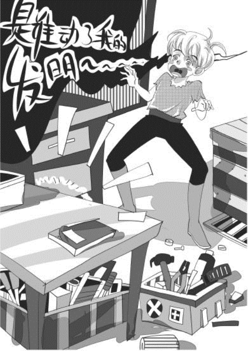 一回到家,我如释重负、健步如飞,把书包一扔,OK,又开始了我的发明!我钻进杂物间,准备鼓捣我的——咦?