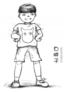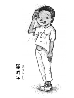 学名张招财,性别男,与白胖子是双胞胎,膘肥肉厚,身子滚圆,皮肤像爸爸一样黝黑,调皮捣蛋,经常欺负杨皮皮和班上其他同学。