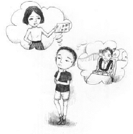 杨先生很淡定,不管儿子做错什么事情,他总是说“淡定,要淡定”。他认为儿子成长过程中出现一点儿问题是很正常的事情,他是这个家庭名副其实的“淡定爸”。杨太太可就完全不一样了,儿子做错一丁点小事,她都会很激动,像火烧眉毛一般地说:“现在犯小错,将来会犯大错。现在不好好学习,就考不上好初中;考不上好初中,就考不上好高中;考不上好高中,就考不上好大学;考不上好大学,我们的儿子就成不了社会精英。成不了社会精英,那可怎么办啊……”妈妈是这个家庭名副其实的“冲动妈”。