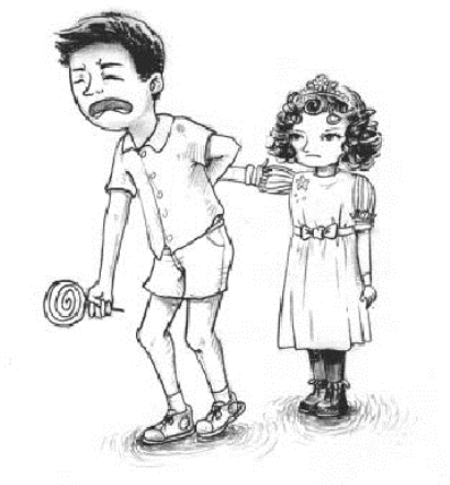 大个子被这一声惊了一下,手里的棒棒糖停在了半空中,但仅仅1秒钟之后,他发现喊住手的人居然是一个三年级的女孩。他轻蔑地瞄了一眼,说:“多管闲事!”然后再次准备把棒棒糖放进那张贪吃的嘴里。