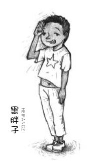 学名张招财,性别男,与白胖子是双胞胎,膘肥肉厚,身子滚圆,皮肤像爸爸一样黝黑,调皮捣蛋,经常欺负杨皮皮和班上其他同学。