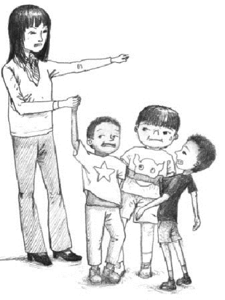 当他们刚扬起拳头的时候,朱老师出现了。朱老师及时制止了黑白胖子的行为,并严厉地批评了他们。
