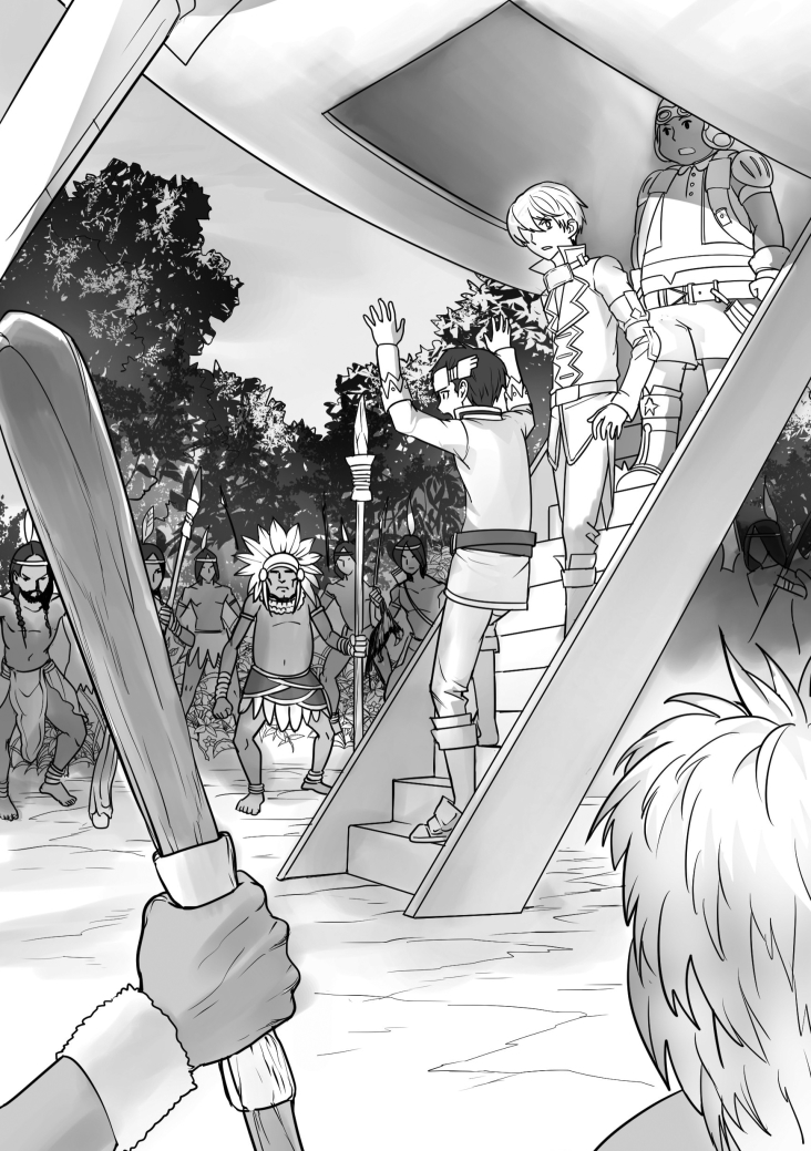 飞船外的景象令少年们震惊了——只见几十个打扮得如同原始人模样的印加星人围成一圈,将他们包围了起来。这些人身材高大,肤色黝黑,四肢赤裸,身上只披着一层藤蔓编制的藤甲,手上都拿着弓箭和长矛一类的武器。看来,他们应该就是这印加星球上的战士了。