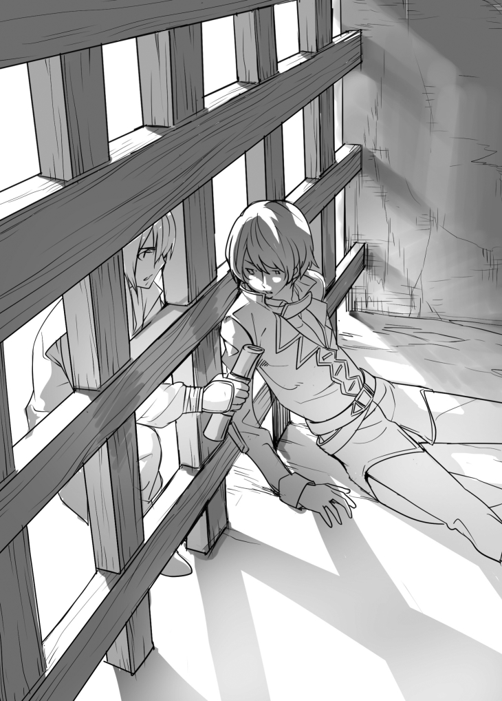 就这样,两个少年隔着地牢的木栅栏开始聊了起来。