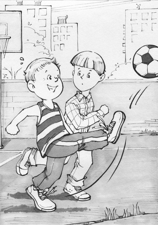 有一次,球到了陈家文的跟前,陈家文不由得伸出脚了,但是丁冬的动作比陈家文更快了一步,他一把抱住球,然后走到门口张望着,自言自语道:“他们怎么还不来?我们不是说好的吗?”