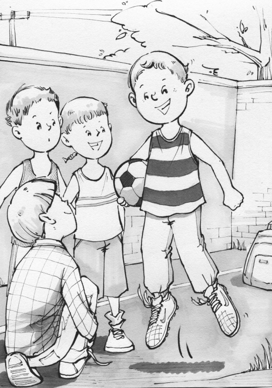 郭东东不好意思地看着陈家文。新球鞋是陈家文的,而他刚刚说了不跟陈家文在一起踢球。