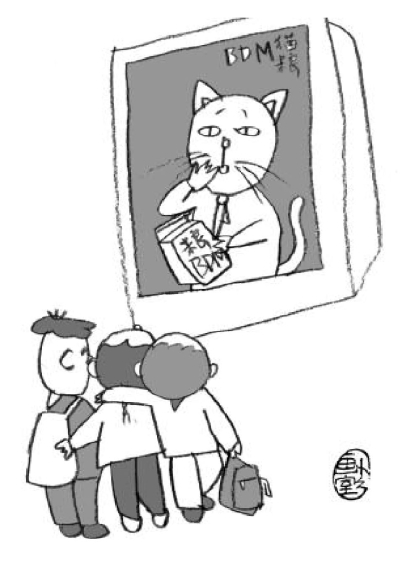 卜卜一边说一边用胳臂碰了碰身边的米高,可米高一点也没有察觉,他正用眼睛盯着橱窗里的电视广告,突然说: