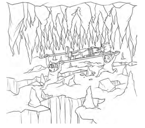 少年特警们被金精灵们粗鲁地抬起,扔到担架上。之后,每两个金精灵抬着一个人,跑进了长长的溶洞里。