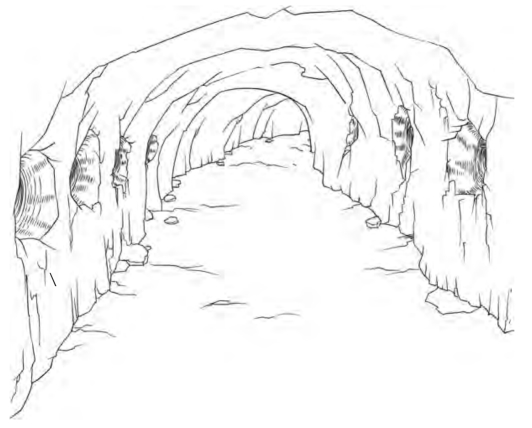 一阵忽轻忽重的滴水声传进了少年特警们的耳朵里。他们把奇巧激光器的照明光调成光团状,然后小心翼翼地向洞内走去。走了大约五十米,他们发现洞壁两边墙壁约半米高的地方,有十几个高一米半左右、宽约一米的圆形洞口,有的洞口里面渗出流水,落到地上发出声响;有的则非常干燥。