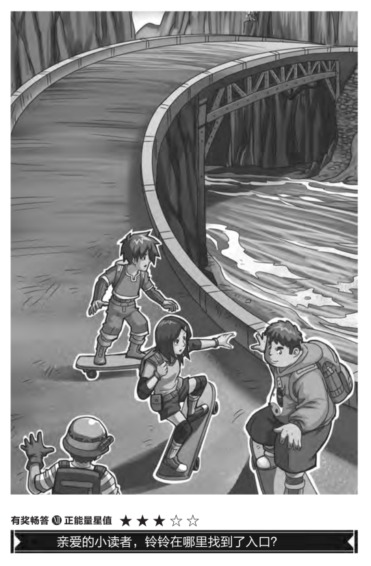 顺着铃铃手指的方向,伙伴们注意到一条曲折的碎石路,碎石路一直向下延伸到一条小河里。小河蜿蜒流淌,不知去往何处。