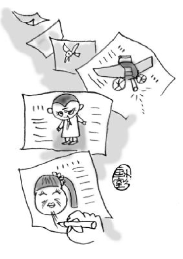 东西。我给书上的女人画上胡子,给小孩画上皱纹。最出色的一次吧,让我想想看,对,是我把一只快要散架的轮椅画成了一架战斗机,而那个轮椅的支架就是可以发