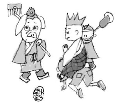 看看,那不是卜卜吗?他还是猪八戒?嘿嘿,看啊,唐僧是周磊,他平时生活里的确够啰唆的,还有沙和尚王笑男,这回孙米浩算完了,居然演一句台词都没有的白马……