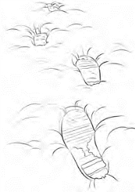 眼前是一片茫茫的雪地,还有高低不平的山丘。在视线所及之处,面具士兵正深一脚浅一脚地向山顶走去,在雪地上留下了长长的、杂乱不堪的鞋印。