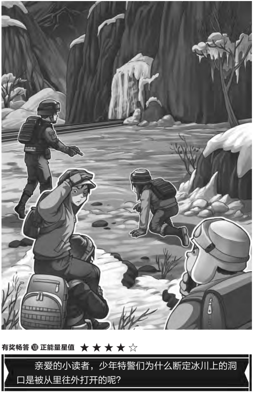 “难道是从竖洞上面下来的?”于是少年特警们站到了竖洞下面,向上看去。