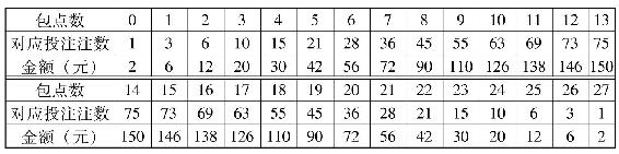 表1-1 陕西风采3D玩法包点投注金额对照表