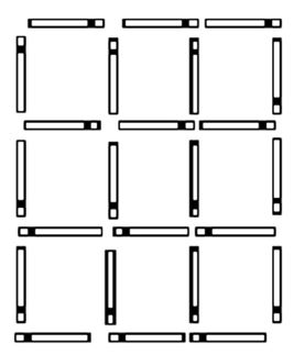 (6)去掉8根火柴,使剩下的火柴形成两个正方形(有两解);