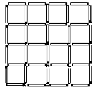 取出16根火柴摆成如图—05所示的堡垒,堡垒四周围着深沟,它的宽度为一根火柴杆。如果有两块长度等于沟宽度的木板,怎样搭桥过勾进入堡垒?