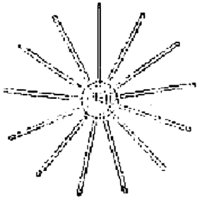 拿出13根火柴和一枚硬币(棋子或其他任何圆物)。把13根火柴均匀地围绕硬币摆上,如图—09所示,有一根火柴头部必须朝向硬币。